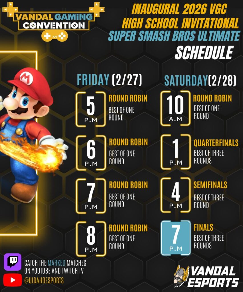 We will also be running a high school Smash Ultimate singles bracket. Stay tuned for schedule updates on this and the team events as we are adjusting the schedule based on entries.
